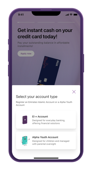 All Emirates Islamic account holders can open an ALPHA Youth Account directly for their children. If you don't have an Emirates Islamic account, download the EI+ Mobile Banking App to open your account now.