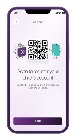 Use the EI+ Mobile Banking App on your child’s device to scan the QR code.